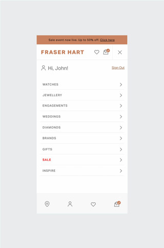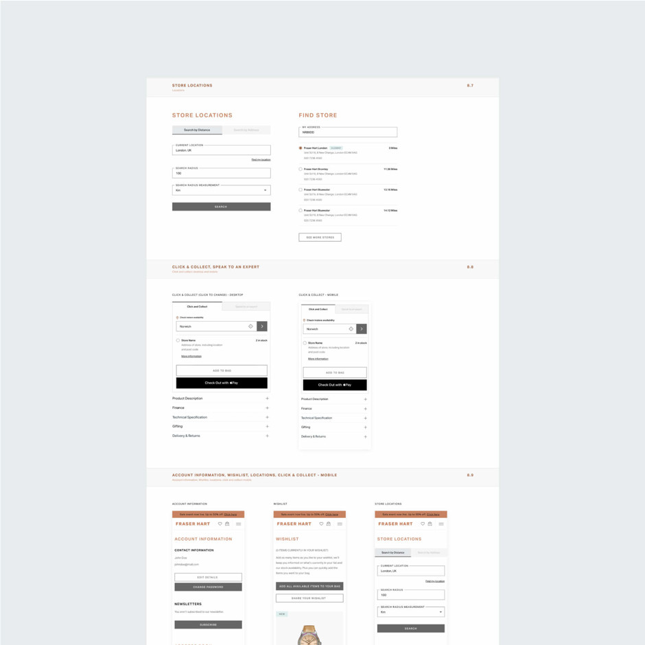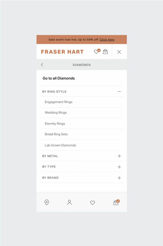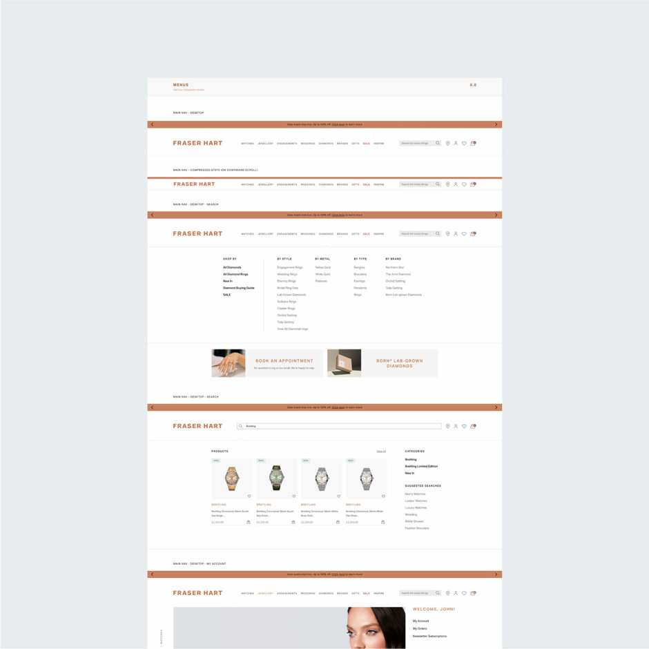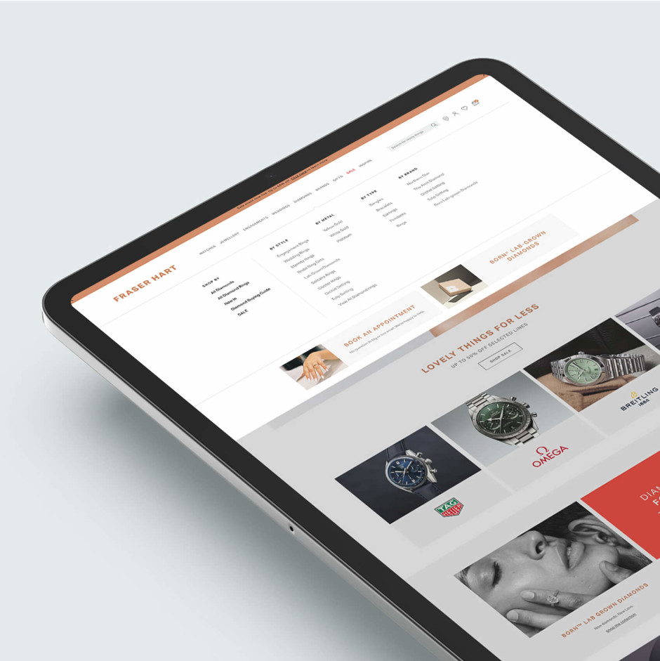 To improve Fraser Hart's existing look and feel and align with the new direction based on updated brand elements. Providing a design system that enhanced existing website components. This included applying the updated brand considerations and improving user functionality to deliver an elevated online shopping experience."